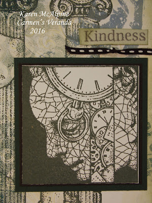 For my project, I used one of the "square" stamps from Carmen's Veranda and added some architectural stamps to the background.