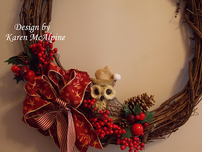 I put up some of my decorations yesterday. I put together this cute owl wreath and hung it in my entry foyer. Here are a few picts.